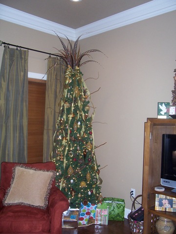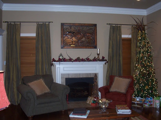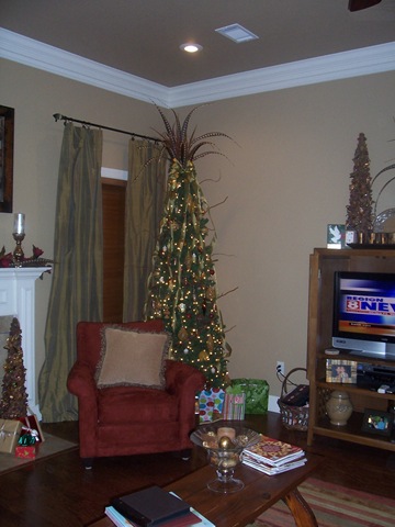 I haven't gone overboard decorating for Christmas just yet. We bought a few new things, but not many. I'd love to buy a ton of new stuff to decorate our new place for the holidays, but have managed to be rational! There are still a few things left to do, but the main thing- the tree- is done! We are still tweaking the outside decor. I hope to have all that wrapped up this weekend. Maybe I'll have some good pictures of the outside up after the weekend. . . we may be getting some winter precipitation Saturday night!!