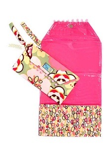 About a month or so ago, I found a really neat diaper & wipes case that folds out into a changing pad at Pink Taffy Designs. I don't know much about baby stuff, but this seems like it would be very functional and it is SO CUTE! The inside is vinyl so it wipes clean and has a pocket for diapers and wipes and the outside is really trendy fabric so you could carry it and it doesn't even look like a baby bag! Anyway, I thought Angela would like it, since it's so girly and fun!!