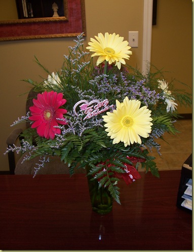 . . . about 2:30 a beautiful bouquet of Gerber daisies were delivered to my office. Aren't daisies the happiest flowers, you can't help but smile when you see them!