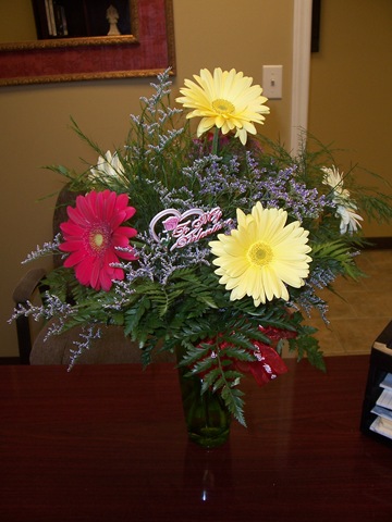 . . . about 2:30 a beautiful bouquet of Gerber daisies were delivered to my office. Aren't daisies the happiest flowers, you can't help but smile when you see them!