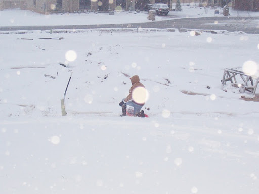 Jarrod picked up a pizza for lunch and some movies, so we stayed in most of the afternoon. About 4pm it occurred to me that our backyard is sloped and would be great for sledding down. So, we borrowed a sled from Uncle Brian and had a great time! Maybe too much fun. I'm sure our neighbors think we are Crazy!!
