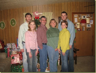 Woohoo! Now that we're engaged Jarrod made it to the family picture at Nanny's, he's moving on up! Can you see how long Jarrod's hair is? That's the longest it's been since then, too. And by the way I am not wearing the same sweater I did last year, it's a NEW black turtleneck, I love them I buy a new one every year.
