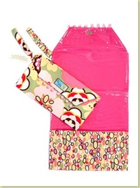About a month or so ago, I found a really neat diaper & wipes case that folds out into a changing pad at Pink Taffy Designs. I don't know much about baby stuff, but this seems like it would be very functional and it is SO CUTE! The inside is vinyl so it wipes clean and has a pocket for diapers and wipes and the outside is really trendy fabric so you could carry it and it doesn't even look like a baby bag! Anyway, I thought Angela would like it, since it's so girly and fun!!