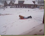 Jarrod picked up a pizza for lunch and some movies, so we stayed in most of the afternoon. About 4pm it occurred to me that our backyard is sloped and would be great for sledding down. So, we borrowed a sled from Uncle Brian and had a great time! Maybe too much fun. I'm sure our neighbors think we are Crazy!!
