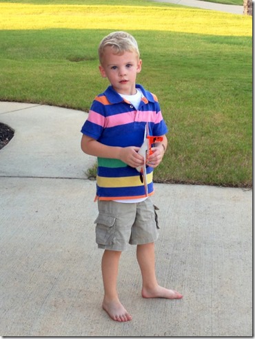 That was Stratton’s last week at TKZ and on Friday they had a little party for the kids leaving for Pre-K. Stratton did seem a little sad to be leaving, and he started saying that he didn’t want to go to a new school. I was nervous, but felt like when he saw his new school and classroom and met his teachers he would change his mind! Naturally, I was right. Monday, the 19th, was VV Pre-K open house. We went to the early drop-in at 10:00am, Jarrod thought that would work better for him. It took us a few minutes to find his classroom! There was so much going on since Kindergarten drop in was the same day. But we found it and we were the only ones in his class there. It was nice to talk to the teachers and for him to get acquainted with the room with no one else around. I had to fill out a bunch of papers and they already had sign up sheets for the events ready. Whew! I didn’t realize how many events and parties they have! Stratton liked his new teachers, they are both very nice! We stayed for about an hour and Stratton played and looked around. Then Jarrod went back to work and Stratton and I met my mom and dad for lunch before I went back to work and my mom stayed at the house with Stratton. After work I needed to run to Target so I took both kids with me (wow! It will be awhile before I do that again!) Then we went home and played outside.